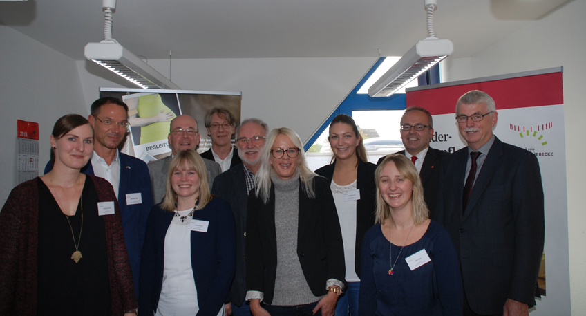 Links im Bild Süsann Püfke, Leiterin des Jugendamts Kreis Minden-Lübbecke, mit Landrat Ali Dogan, SPD, rechts im Bild Daniela Pieper, ASD Kreis Minden-Lübbecke
